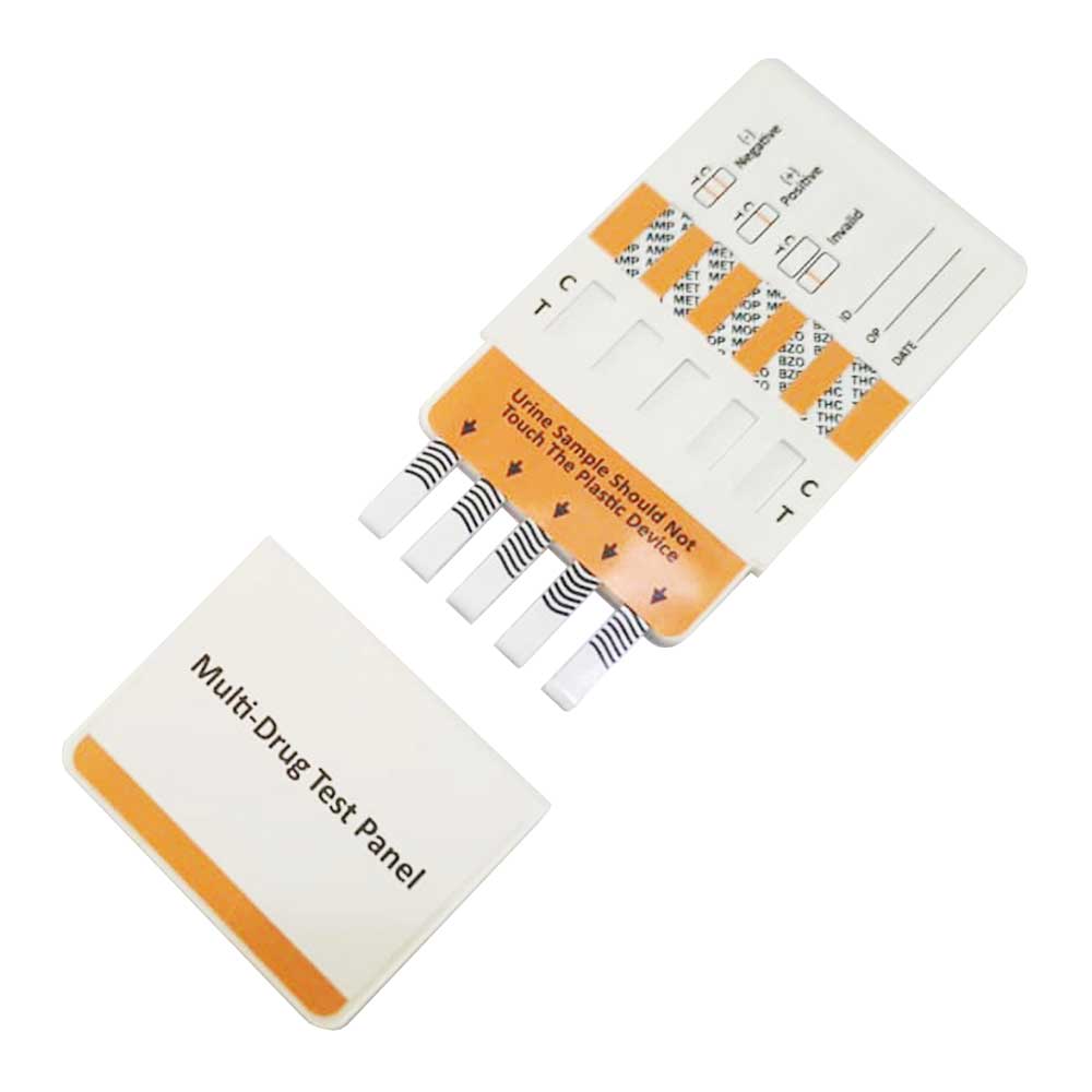 Multi-drug test dip cards or panels provide drug detection for 5 commonly abused drug types in one simple test.